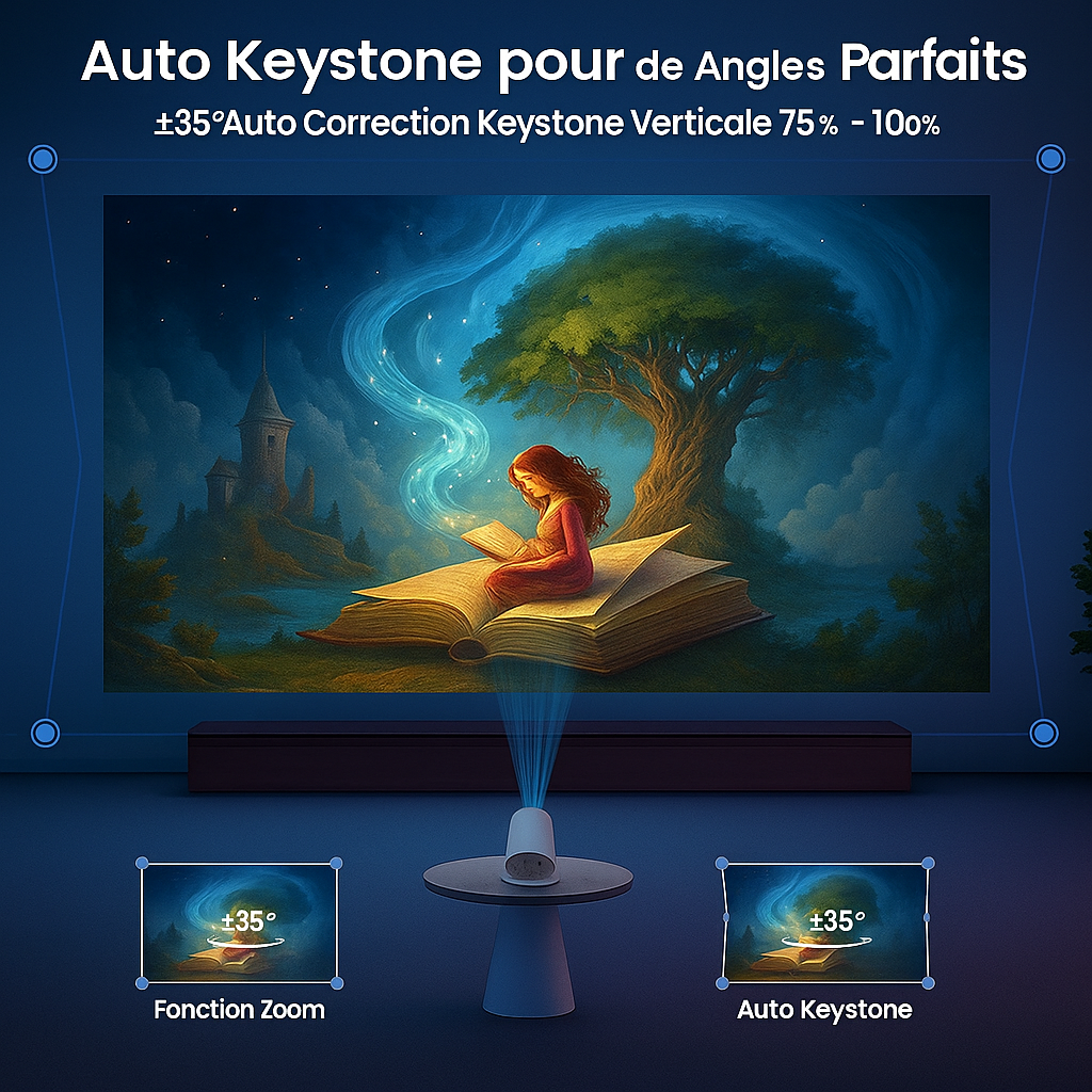 Oui ! Grâce à sa rotation flexible à 180°, vous pouvez projeter l’image parfaitement sur les murs, les plafonds ou d’autres surfaces.